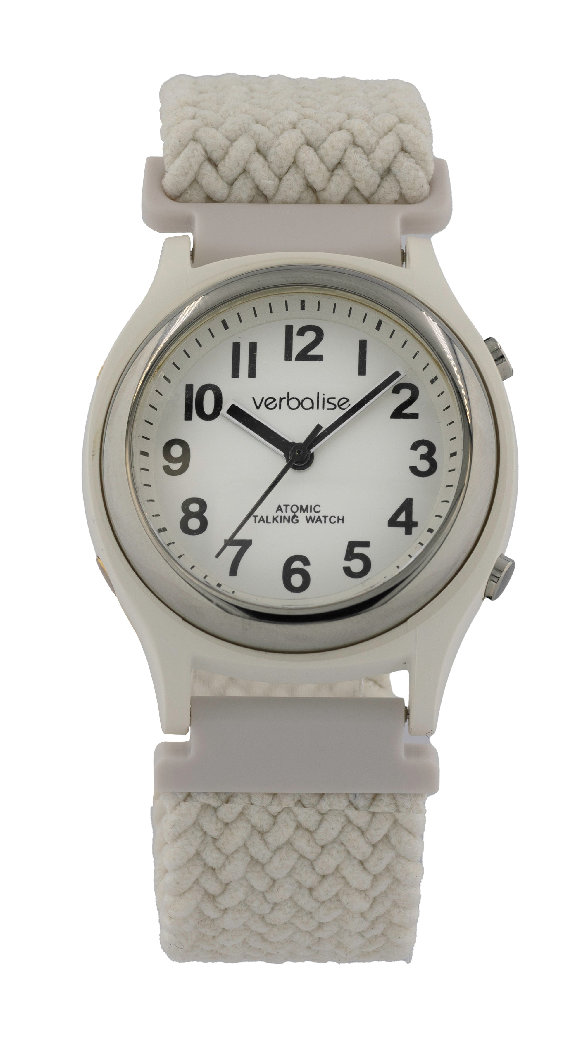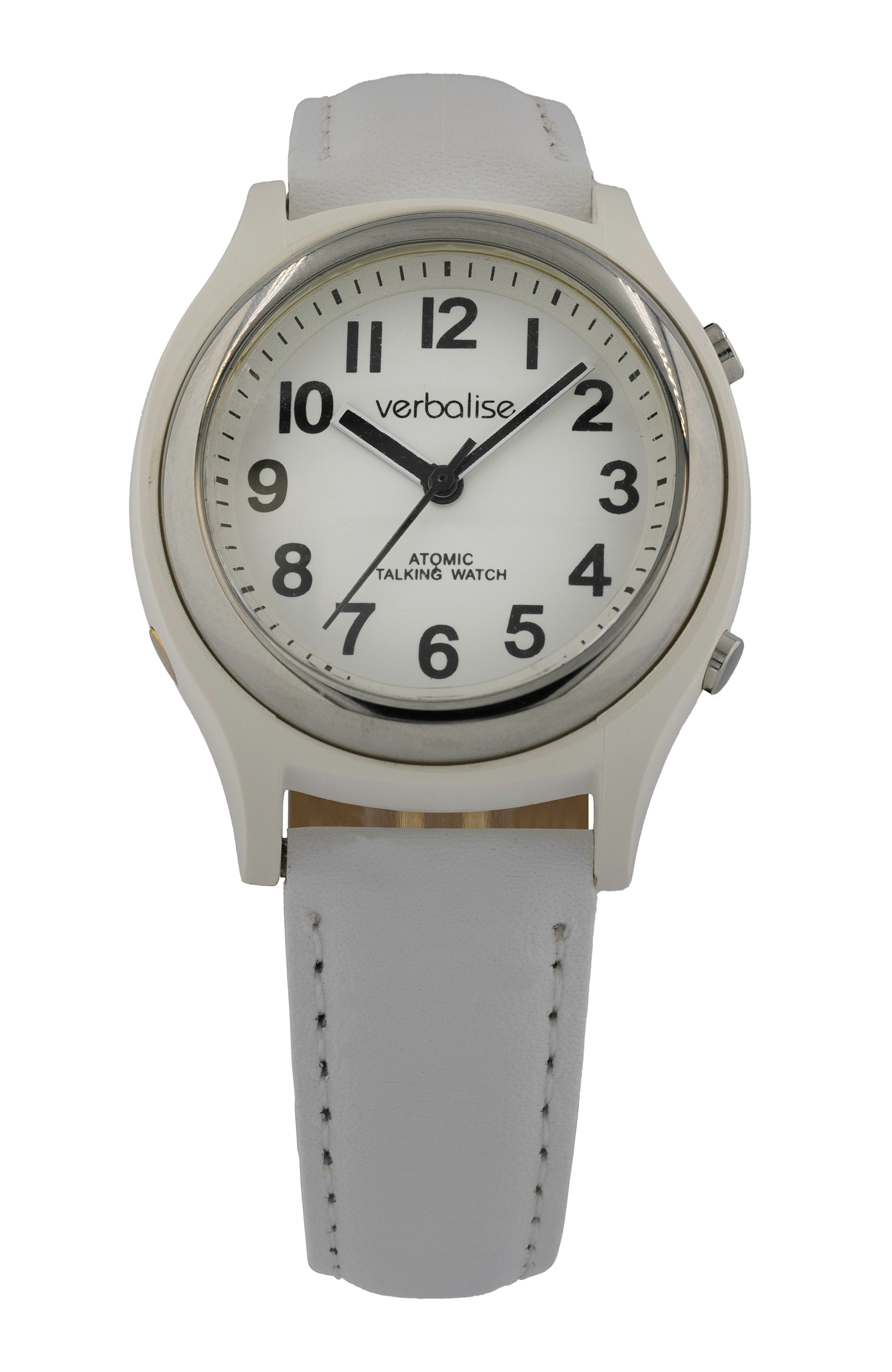 A new style of talking watch designed for ladies in mind. Lightweight yet robust radio controlled talking watch. A solid white case, with a choice of watch strap, giving you the flexibility to style your watch how you want it.