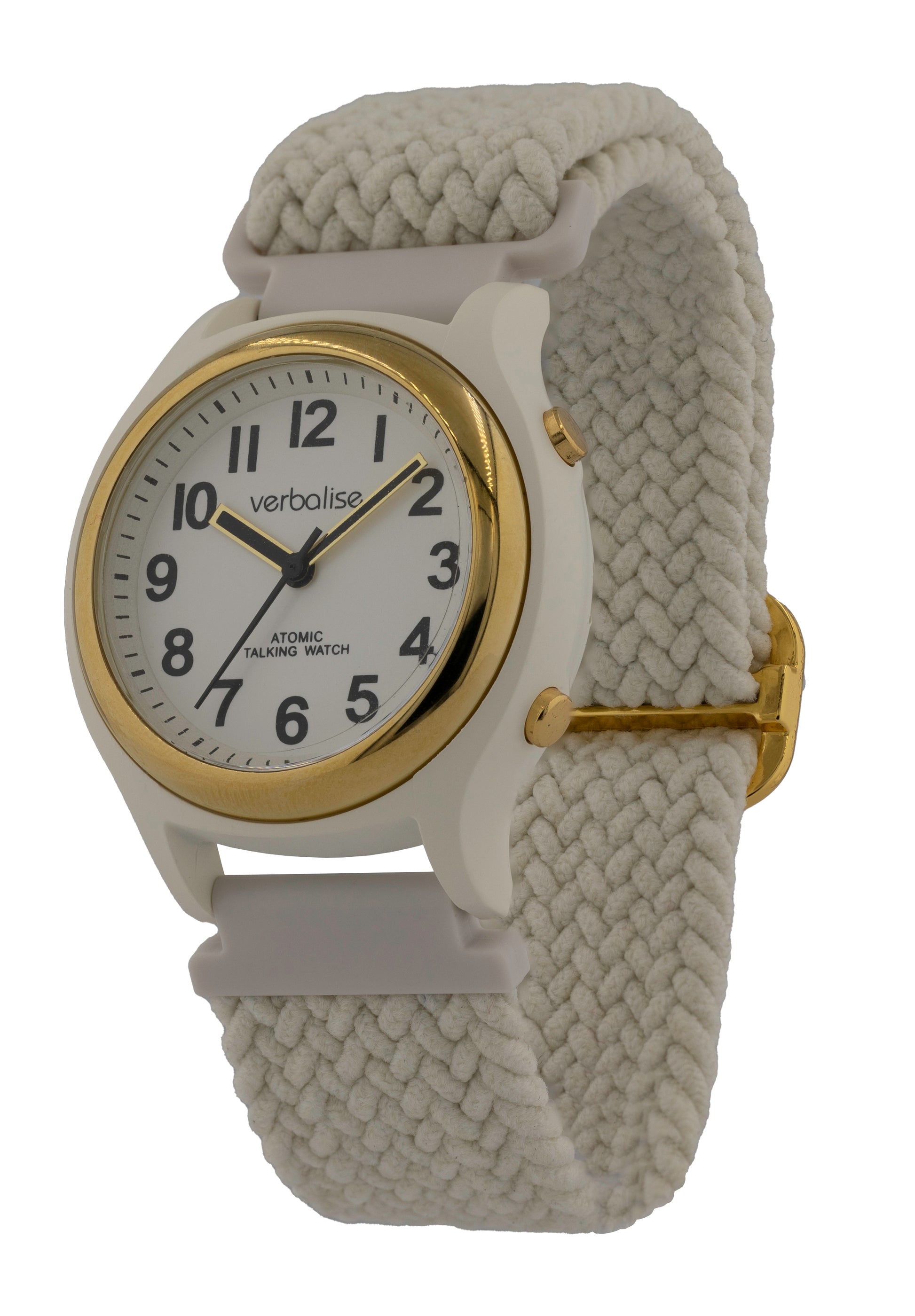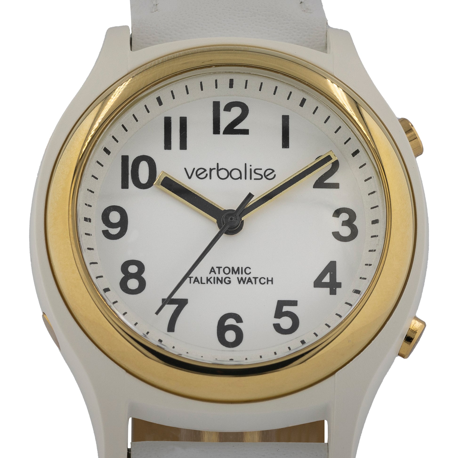 A new style of talking watch designed for ladies in mind. Lightweight yet robust radio controlled talking watch. A solid white case, with a choice of watch strap, giving you the flexibility to style your watch how you want it.