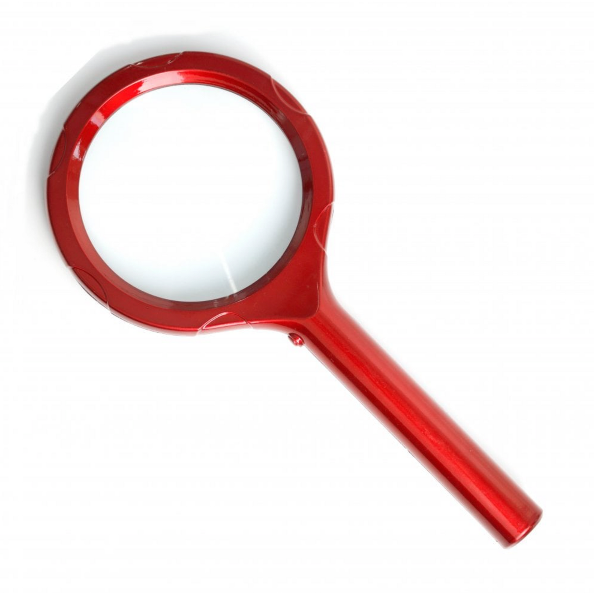Verbalise are pleased to introduce this red lightweight hand held magnifier with 12 daylight bright LED lights around the rim.