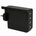 4 Port USB wall charger with up to 2400mA per port for fast charging. LED power indicator light, fully ErP stage II compliant