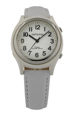 A new style of talking watch designed for ladies in mind. Lightweight yet robust radio controlled talking watch. A solid white case, with a choice of watch strap, giving you the flexibility to style your watch how you want it.