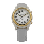 A new style of talking watch designed for ladies in mind. Lightweight yet robust radio controlled talking watch. A solid white case, with a choice of watch strap, giving you the flexibility to style your watch how you want it.