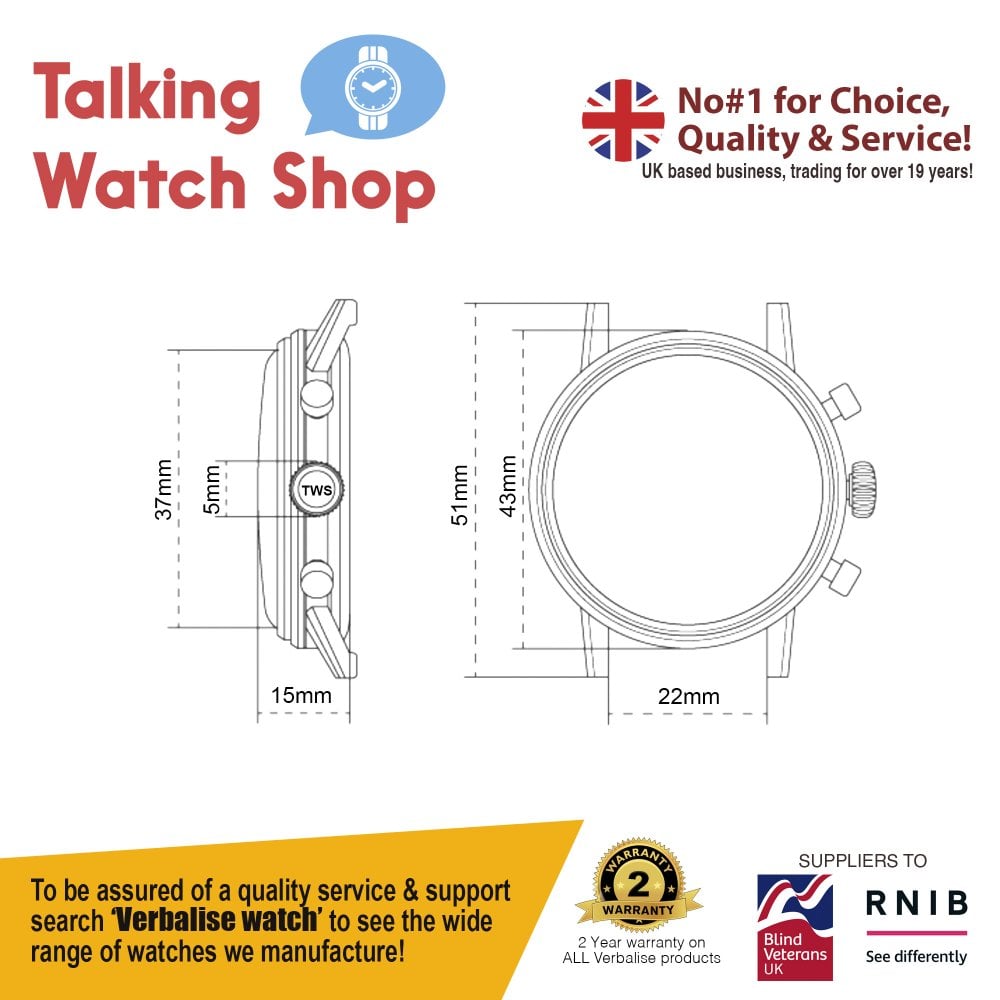 Simply press the 2 o'clock button once and the watch will speak the time and press it a second time for the date to be spoken to you. You have a choice of two clear English voices by voiceover artists Simon Fellows (24 hour) and Laura Shavin (12 hour).