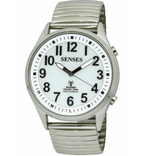 Classic white dial with contrasting black numbers and hands give an easy time check at a glance, with the added benefit of speaking the time and date at the touch of a button. The watch automatically updates with the atomic signal to guarantee accuracy.